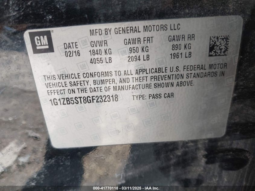 Color BlackCylinders 4Drive Front wheel driveVIN 1G1ZB5ST8GF******State Run & Drive VerifiedDamage Front or back AutoRIA