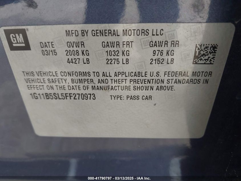 Color BlueCylinders 4Drive Front wheel driveVIN 1G11B5SL5FF******State Run & Drive VerifiedDamage Front or back AutoRIA