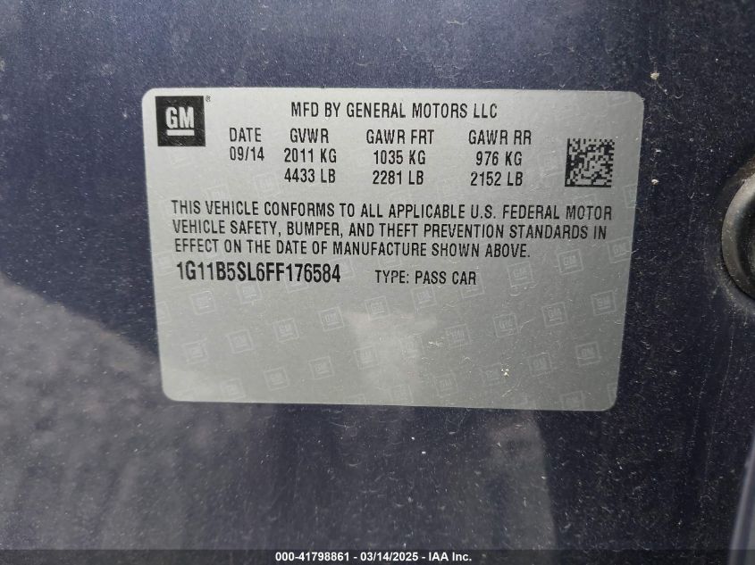Color BlueCylinders 4Drive Front wheel driveVIN 1G11B5SL6FF******State Run & Drive VerifiedDamage Back AutoRIA