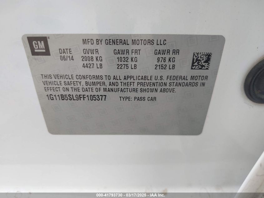 Color WhiteCylinders 4Drive Front wheel driveVIN 1G11B5SL9FF******State Run & Drive VerifiedDamage Front or back AutoRIA