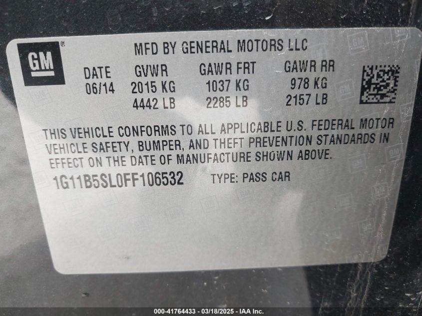 2015 CHEVROLET MALIBU 2015 Gasoline, 2.5, Front wheel drive, VIN - 1G11B5SL0FF****** from the USA