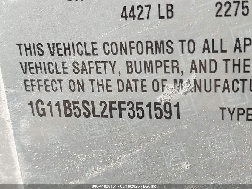 Color GoldCylinders 4Drive Front wheel driveVIN 1G11B5SL2FF******State Run & Drive VerifiedDamage Right side AutoRIA