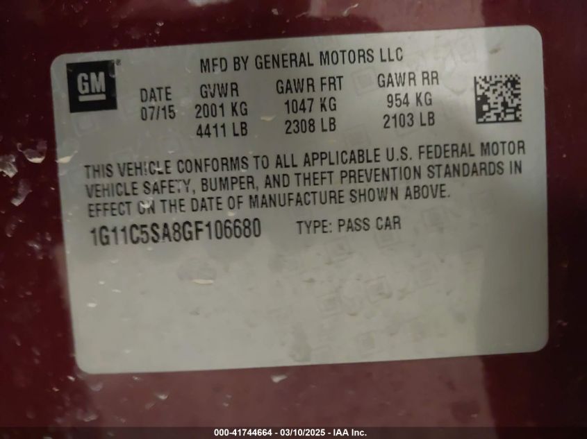 Color RedCylinders 4Drive Front wheel driveVIN 1G11C5SA8GF******State Run & Drive VerifiedDamage Front or back AutoRIA