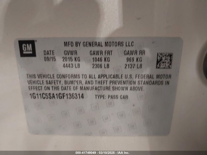 Color ChampagneCylinders 4Drive Front wheel driveVIN 1G11C5SA1GF******State Run & Drive VerifiedDamage Rear left AutoRIA