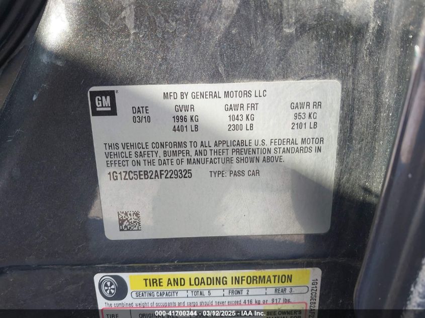 Color GrayCylinders 4Drive Front wheel driveVIN 1G1ZC5EB2AF******State Run & Drive VerifiedDamage Front or back
