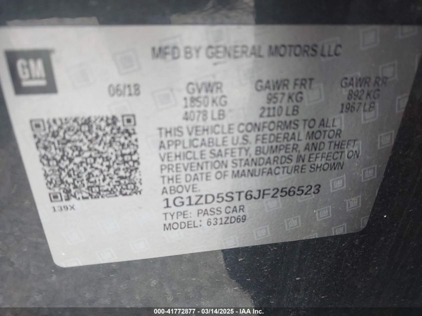 Color GrayCylinders 4Drive Front wheel driveVIN 1G1ZD5ST6JF******State Run & Drive VerifiedDamage Front or back AutoRIA