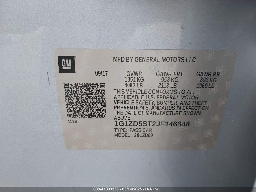 2018 CHEVROLET MALIBU 2018 Gasoline, 1.5, Front wheel drive, VIN - 1G1ZD5ST2JF****** from the USA