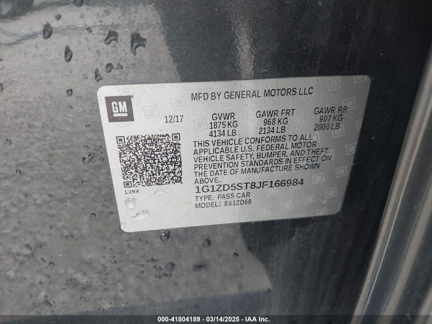 Color GrayCylinders 4Drive Front wheel driveVIN 1G1ZD5ST8JF******State Run & Drive VerifiedDamage Front or back AutoRIA