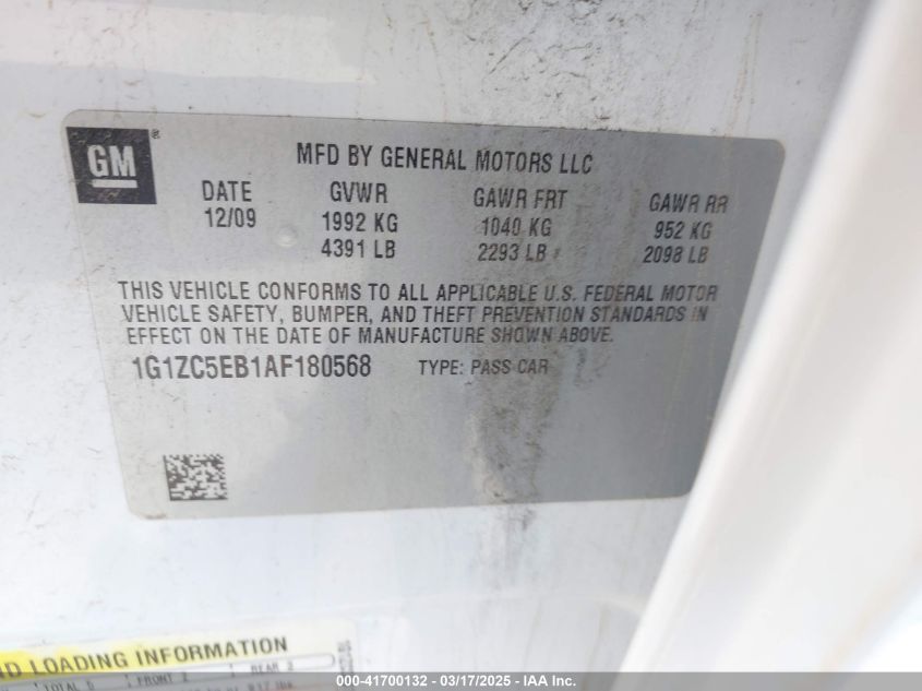 Color WhiteCylinders 4Drive Front wheel driveVIN 1G1ZC5EB1AF******State Run & Drive VerifiedDamage Front or backAuction date 2025-03-21