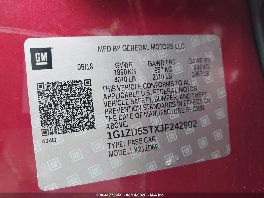 Color RedCylinders 4Drive Front wheel driveVIN 1G1ZD5STXJF******State Run & Drive VerifiedDamage Front or back AutoRIA