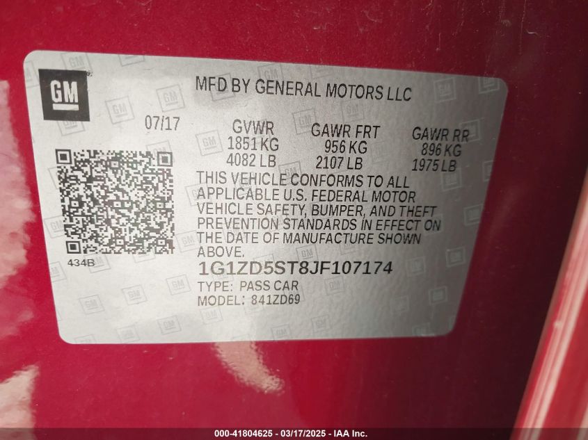 Color RedCylinders 4Drive Front wheel driveVIN 1G1ZD5ST8JF******State Run & Drive VerifiedDamage Insignificant AutoRIA