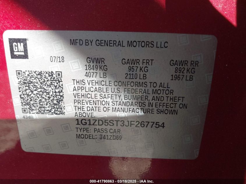 2018 CHEVROLET MALIBU 2018 Gasoline, 1.5, Front wheel drive, VIN - 1G1ZD5ST3JF****** from the USA