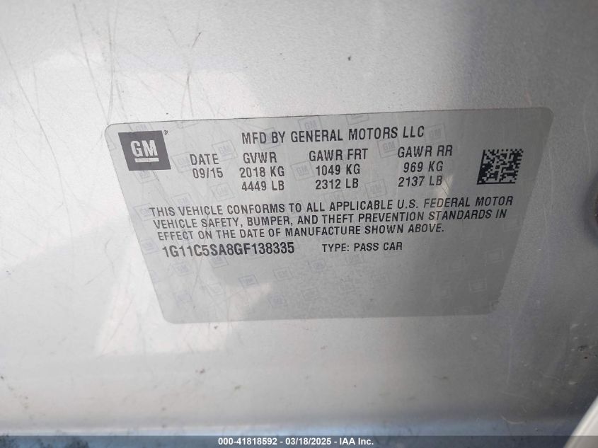 Color SilverCylinders 4Drive Front wheel driveVIN 1G11C5SA8GF******State Run & Drive VerifiedDamage Front right AutoRIA