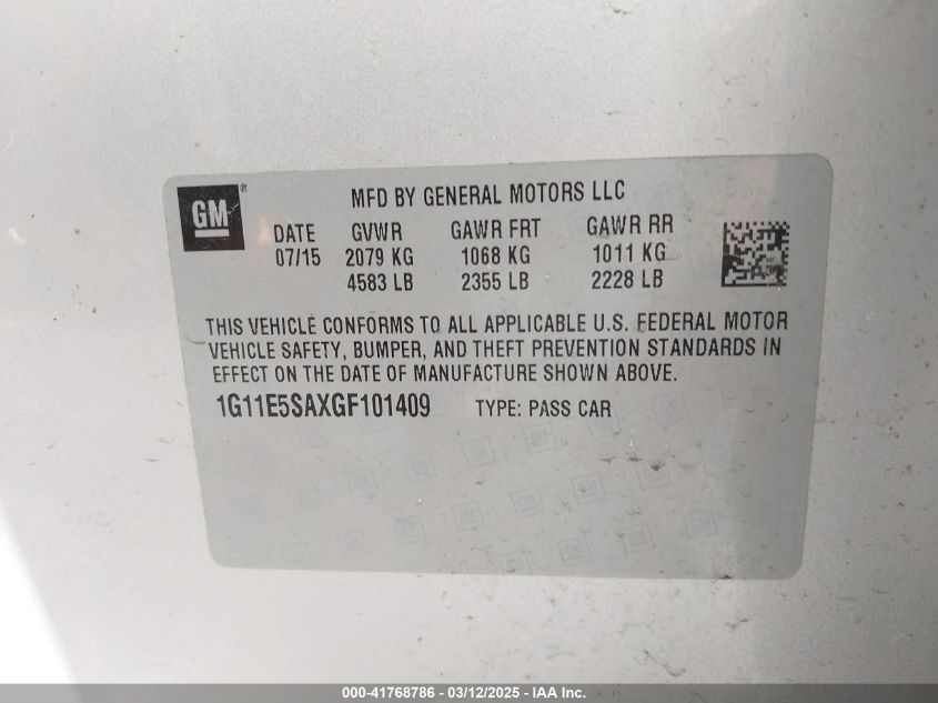 2016 CHEVROLET MALIBU 2016 Gasoline, 2.5, Front wheel drive, VIN - 1G11E5SAXGF****** from the USA