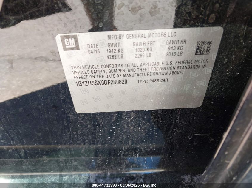 Color BlackCylinders 4Drive Front wheel driveVIN 1G1ZH5SX0GF******State Run & Drive VerifiedDamage From the sides AutoRIA