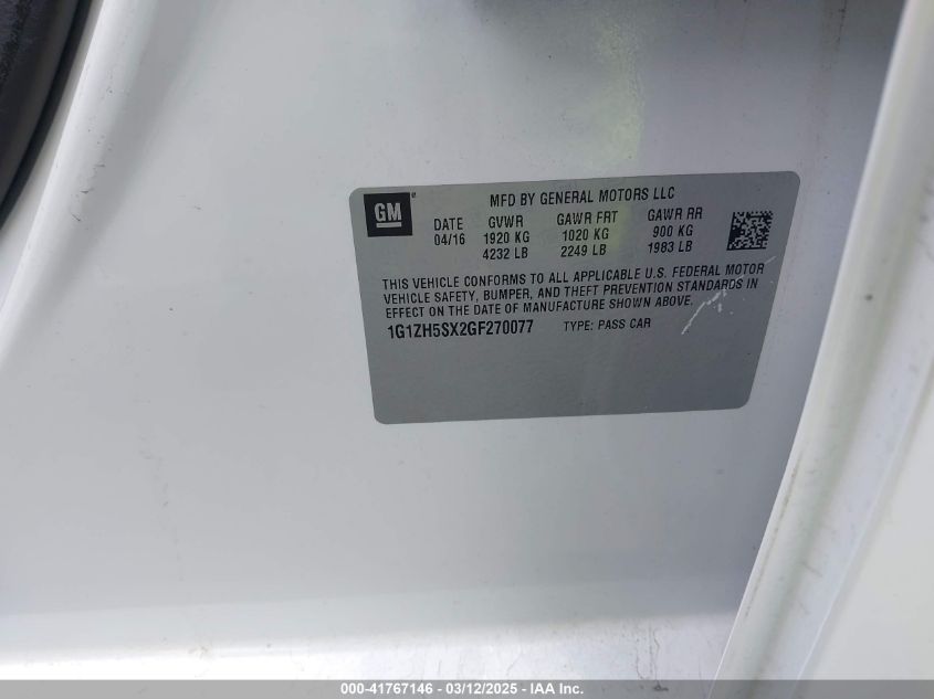 2016 CHEVROLET MALIBU 2016 Gasoline, 2.0, Front wheel drive, VIN - 1G1ZH5SX2GF****** from the USA