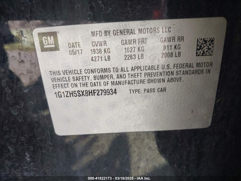 2017 CHEVROLET MALIBU 2017 Gasoline, 2.0, Front wheel drive, VIN - 1G1ZH5SX8HF****** from the USA