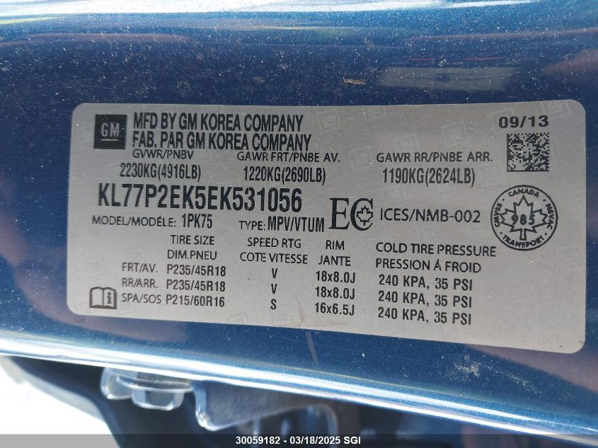 2014 CHEVROLET ORLANDO 2014 , , Unknown, VIN - KL77P2EK5EK****** from the USA