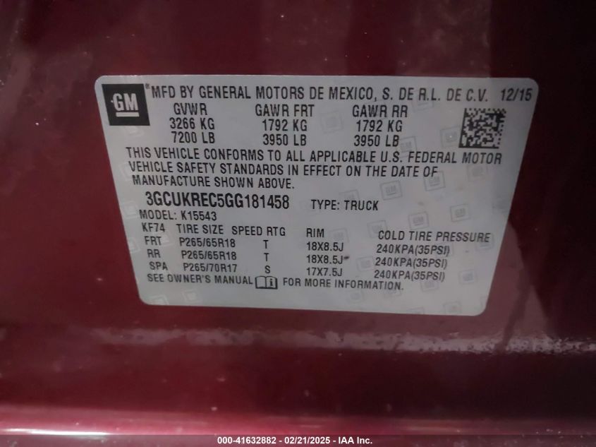 Color BurgundyCylinders 8Drive Full driveVIN 3GCUKREC5GG******State Run & Drive VerifiedDamage Front or back