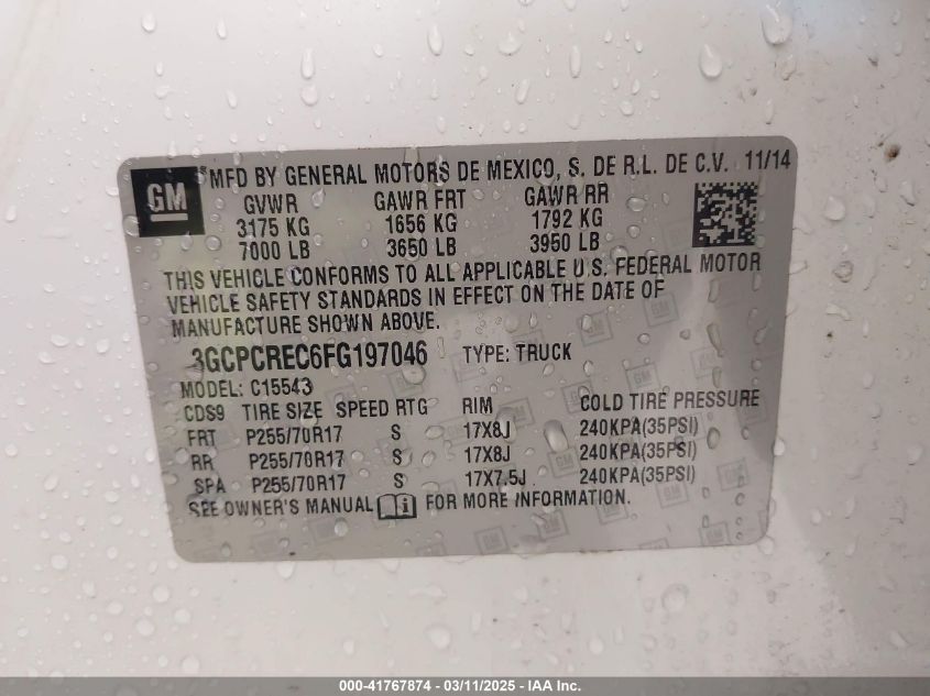 Color WhiteCylinders 8Drive UnknownVIN 3GCPCREC6FG******State Run & Drive VerifiedDamage Front or back