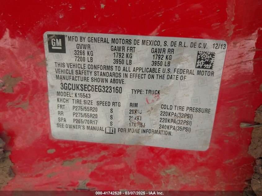 Color RedCylinders 8Drive Full driveVIN 3GCUKSEC6EG******State Run & Drive VerifiedDamage Left side