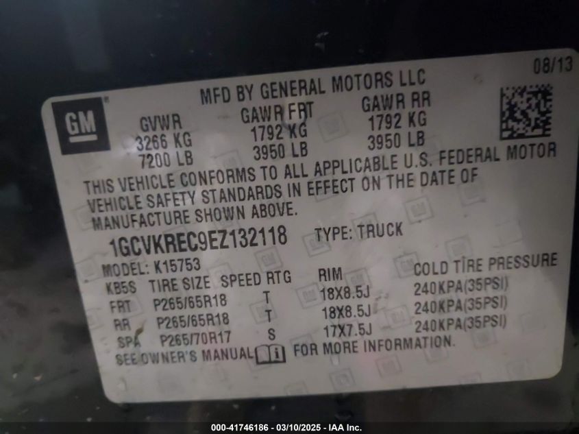 Color BlackCylinders 8Drive Full driveVIN 1GCVKREC9EZ******State Run & Drive VerifiedDamage Front or back