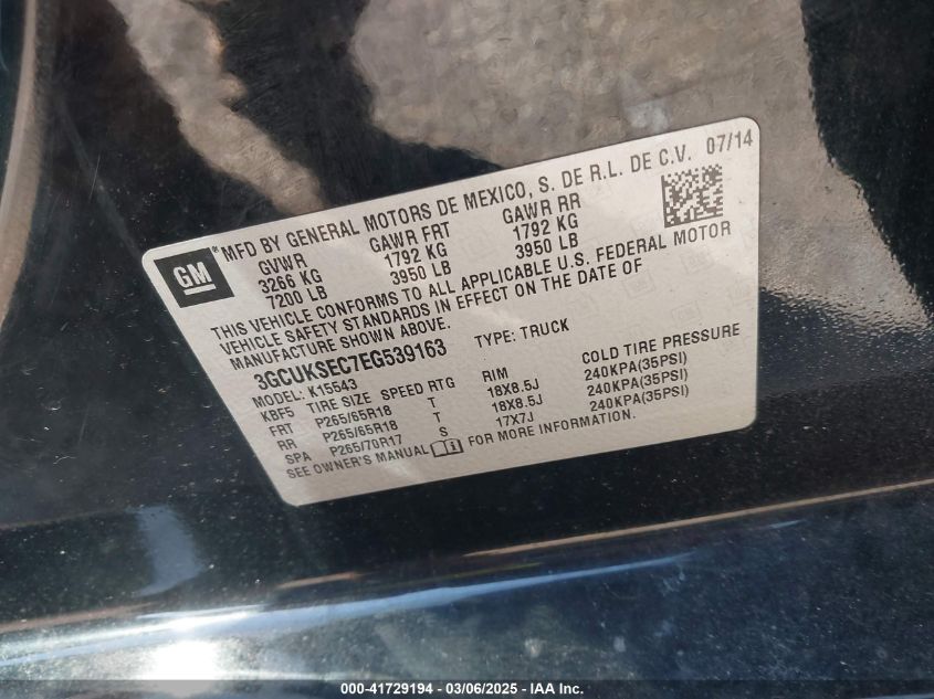 Color BlackCylinders 8Drive Full driveVIN 3GCUKSEC7EG******State Run & Drive VerifiedDamage Front left