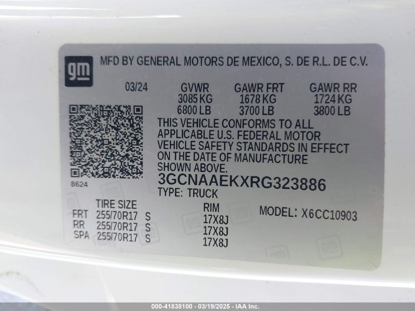 Color WhiteCylinders 4Drive UnknownVIN 3GCNAAEKXRG******State Run & Drive VerifiedDamage From the sides
