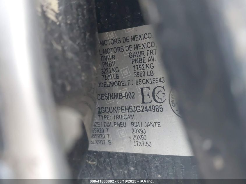 Color BlackCylinders 6Drive Full driveVIN 3GCUKPEH5JG******State Run & Drive VerifiedDamage Engine fire