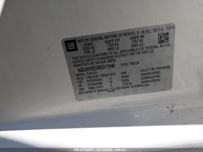 Color WhiteCylinders 8Drive Full driveVIN 3GCUKTEC2EG******State Run & Drive VerifiedDamage Front or back