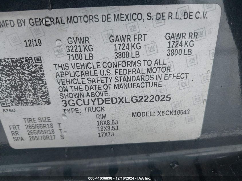 Color BlueCylinders 8Drive Full driveVIN 3GCUYDEDXLG******State Run & Drive VerifiedDamage Front left