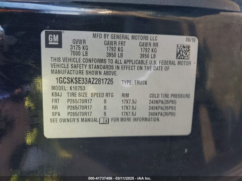 Color BlackCylinders 8Drive Full driveVIN 1GCSKSE33AZ******State Run & Drive VerifiedDamage From the sidesAuction date 2025-03-24