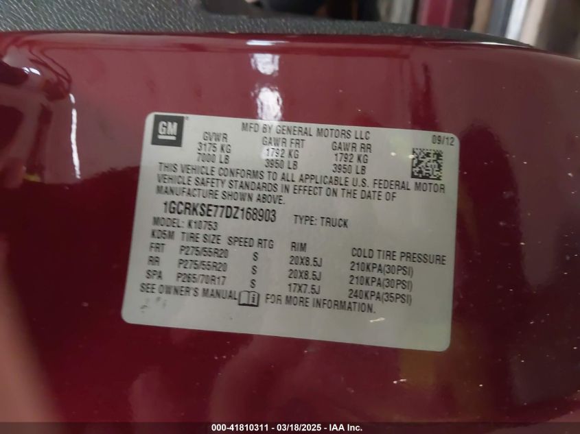 Color BurgundyCylinders 8Drive Full driveVIN 1GCRKSE77DZ******State Run & Drive VerifiedDamage Front right