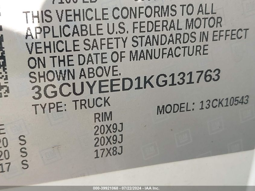 Color WhiteCylinders 8Drive Full driveVIN 3GCUYEED1KG******State Run & Drive VerifiedDamage Water