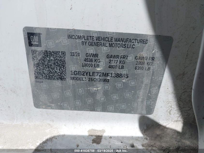 Color WhiteCylinders 8Drive Full driveVIN 1GB2YLE72MF******State Run & Drive VerifiedDamage Right sideAuction date 2025-03-25