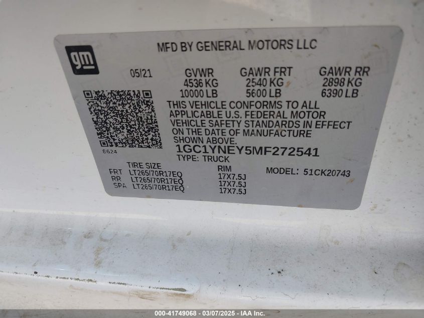 2021 CHEVROLET SILVERADO 2500 2021 Diesel, 6.6, Full drive, VIN - 1GC1YNEY5MF****** from the USA