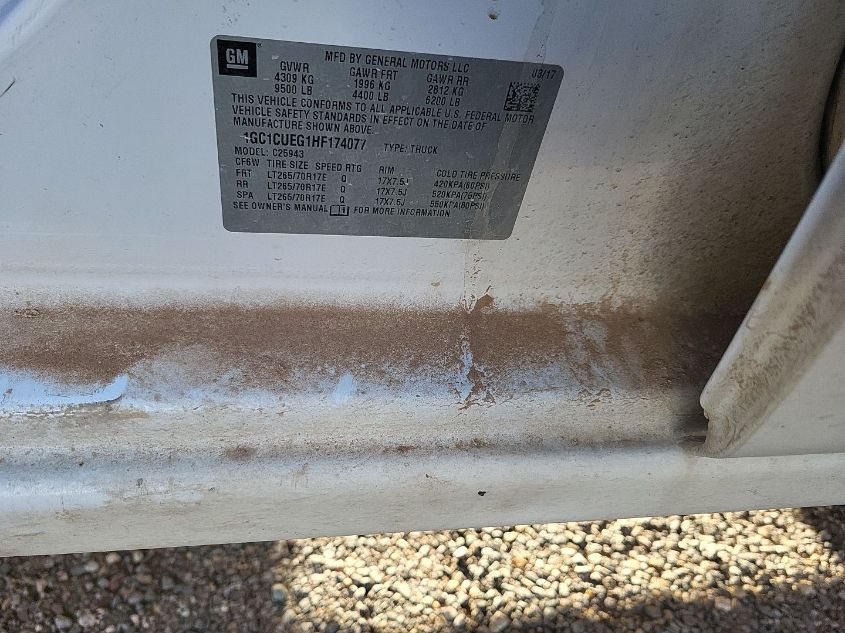 Color Cylinders 8Drive Rear wheel driveVIN 1GC1CUEG1HF******State Run & Drive VerifiedDamage InsignificantAuction date 2025-06-01
