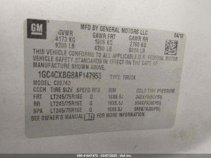 Color SilverCylinders 8Drive UnknownVIN 1GC4CXBG8AF******State Run & Drive VerifiedDamage Front and back