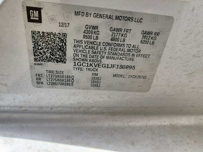 Color Cylinders 8Drive Full driveVIN 1GC1KVEG1JF******State Run & Drive VerifiedDamage InsignificantAuction date 2025-06-01