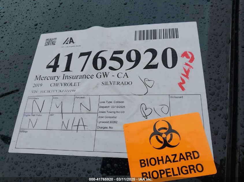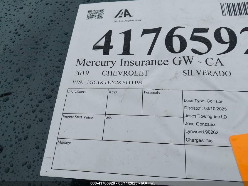 Color BlackCylinders 8Drive Full driveVIN 1GC1KTEY2KF******State Run & Drive VerifiedDamage Front left