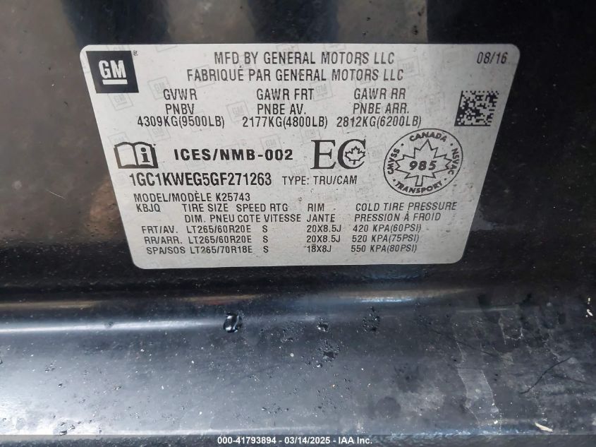 2016 CHEVROLET SILVERADO 2500 2016 Gasoline, 6.0, Full drive, VIN - 1GC1KWEG5GF****** from the USA