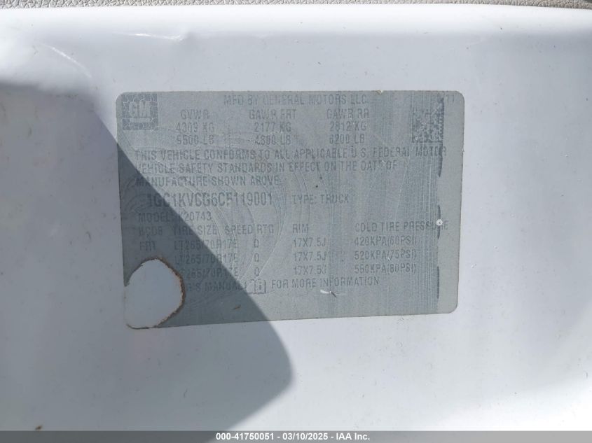 Color WhiteCylinders 8Drive Full driveVIN 1GC1KVCG6CF******State Run & Drive VerifiedDamage Front and backAuction date 2025-03-27