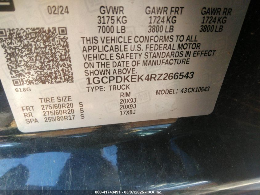 2024 CHEVROLET SILVERADO 2024 Gasoline, 2.7, Full drive, VIN - 1GCPDKEK4RZ****** from the USA