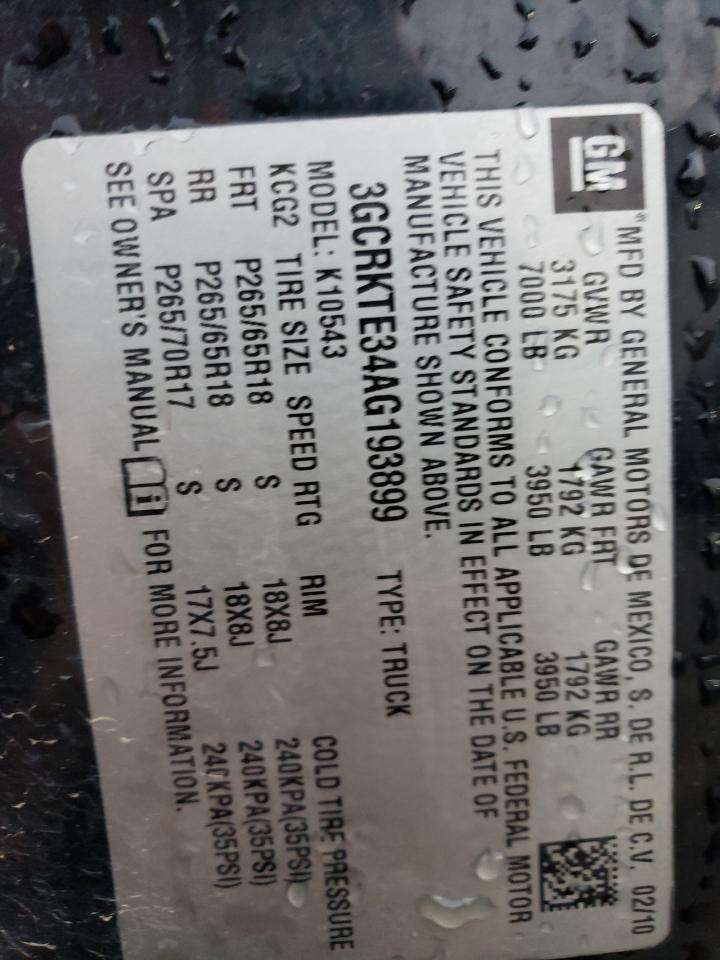 Color BlackCylinders 8Drive 4x4 with rear wheel driveVIN 3GCRKTE34AG193899State Vehicle StartsDamage Front or back