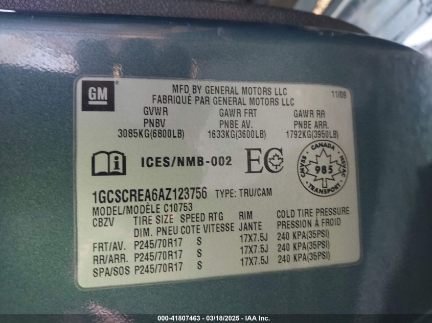 Color GrayCylinders 8Drive UnknownVIN 1GCSCREA6AZ******State Run & Drive VerifiedDamage Right side