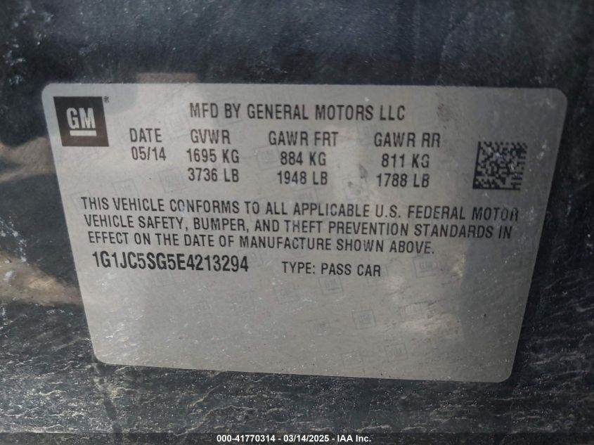 Color GrayCylinders 4Drive Front wheel driveVIN 1G1JC5SG5E4******State Run & Drive VerifiedDamage Front or back AutoRIA
