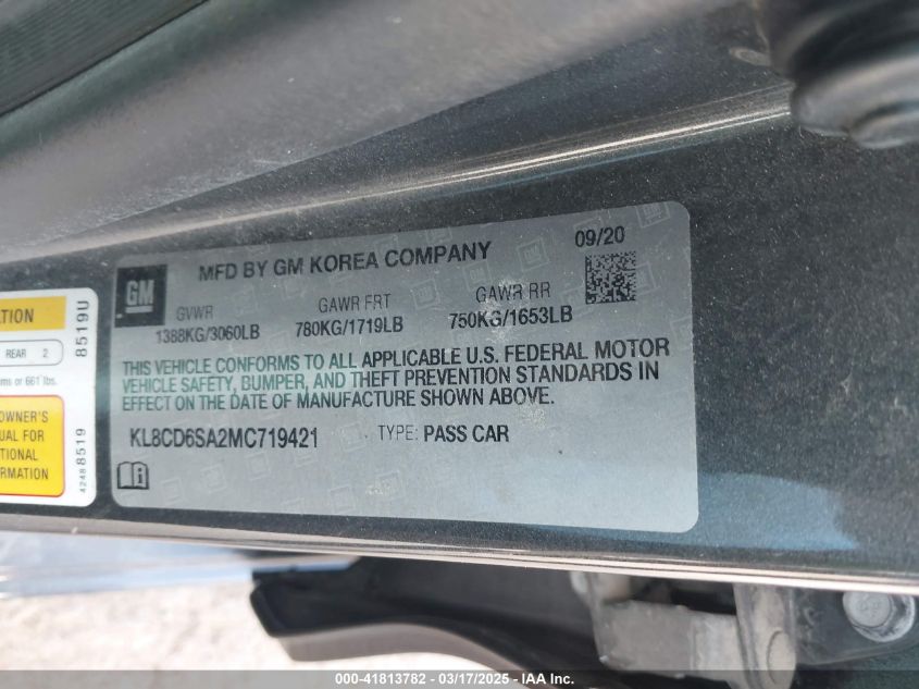 2021 CHEVROLET SPARK 2021 Gasoline, 1.4, Front wheel drive, VIN - KL8CD6SA2MC****** from the USA