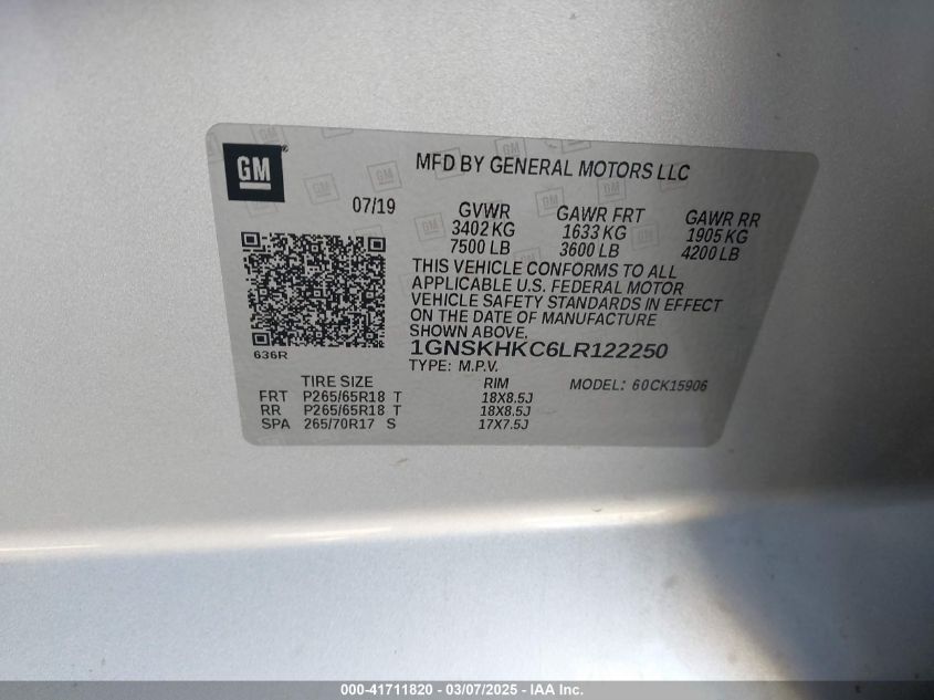 Color SilverCylinders 8Drive Full driveVIN 1GNSKHKC6LR******State Run & Drive VerifiedDamage BackAuction date 2025-03-26 AutoRIA