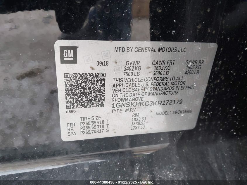 Color BlackCylinders 8Drive Full driveVIN 1GNSKHKC3KR******State Run & Drive VerifiedDamage Front or back AutoRIA