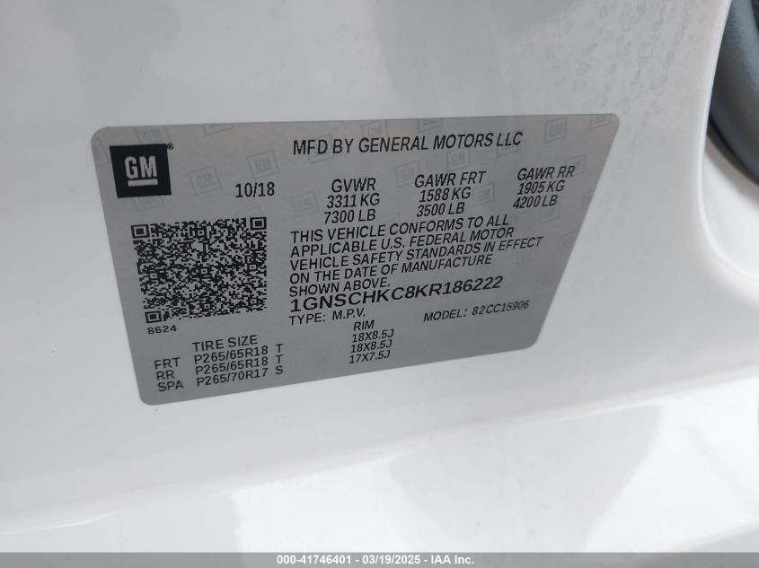2019 CHEVROLET SUBURBAN 2019 Gasoline, 5.3, Unknown, VIN - 1GNSCHKC8KR****** from the USA